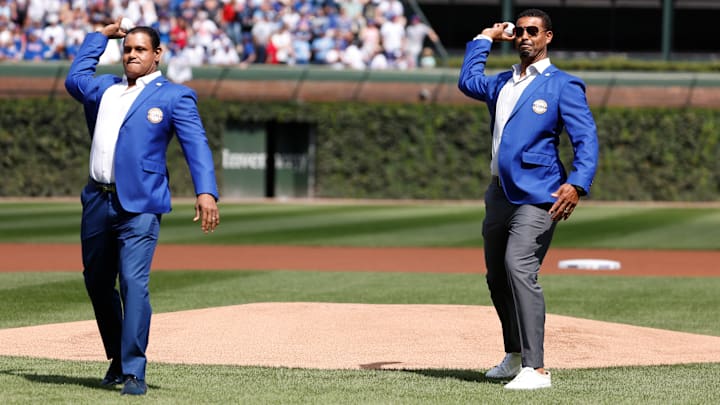 This weekend, Sammy Sosa joined Chicago Cubs immortality alongside Derrek Lee as the latest inductees into the organization's Hall of Fame. Donning the bright blue Hall of Fame jackets, the duo threw out first pitches ahead of Sunday's game at Wrigley Field.